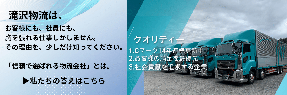 私たち滝沢物流は、お客様のビジネスを物流でサポートし、より発展・成長してもらうことを目的としています。